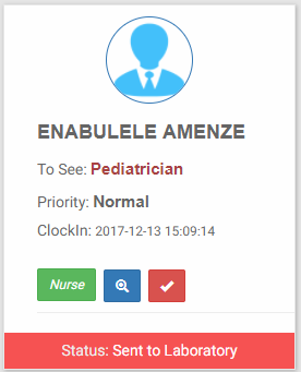 The list entries shows the patient name, whom to see, list priority and time clocked in. There are 3 buttons on each patient entry. For each patient on the list, a doctor will see a doctor button, a nurse will see a nurse button and every other person will see a staff button. Then there is the COMPLETE and VIEW buttons respectively. The VIEW button will take you to the patient management page of the patient you select and the complete button will complete the process and remove the patient from the waiting list.